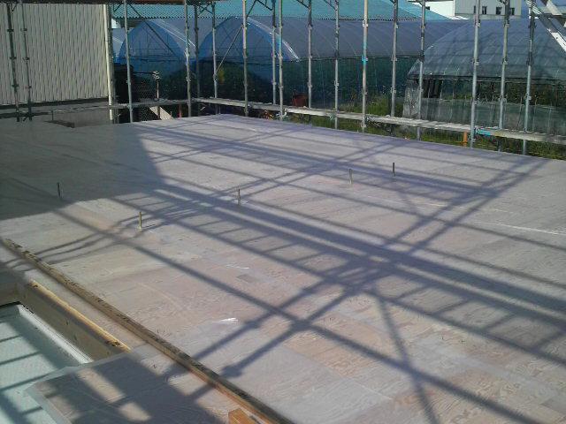 今日は1階に床下断熱とネタレス合板を張って