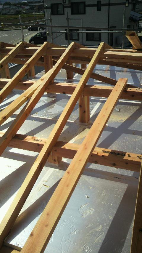 今回のS様邸の天井断熱ですが、桁上にQ1ボードを張り・その上に