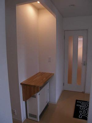 玄関前の飾り棚はお子さんが学校で作ってくる工作などを飾っても可愛いですね♪
