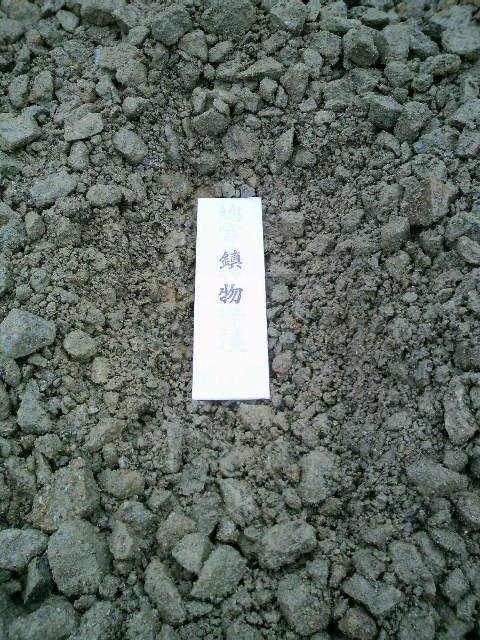 地鎮祭で、総宮神社さんから頂いた鎮物を、建て物の中心に