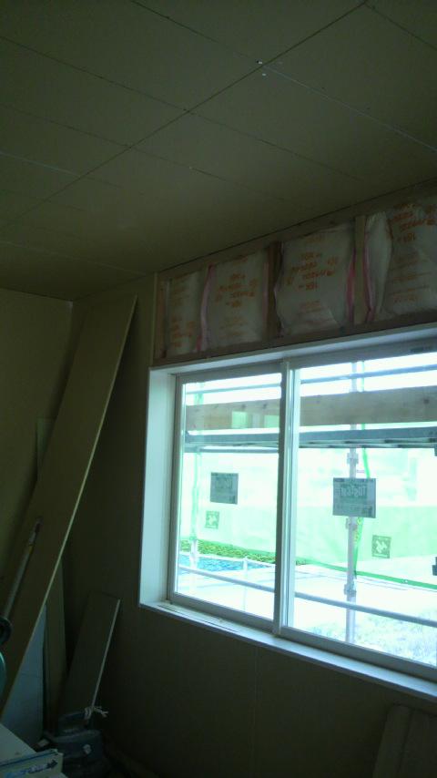 内部の造作が進み、1・2階共、壁断熱をいれ、ボード張りが進んでいます。