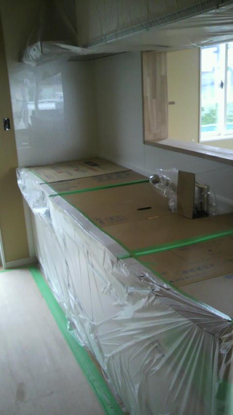 キッチンの取付が終わりました。対面のカウンター下に、蓄暖が取付に
