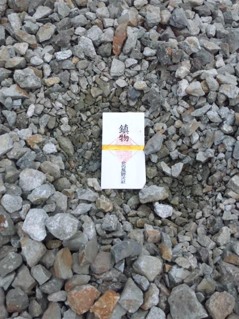 地鎮祭の際に神主様より預かりました物を南に向けてしっかりと埋めました。