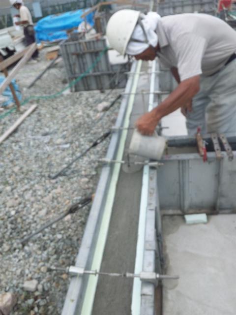水平を保つために水状のセメントを流します。