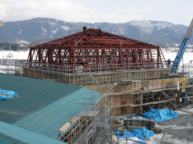 ▼屋根の鉄骨部分が完成