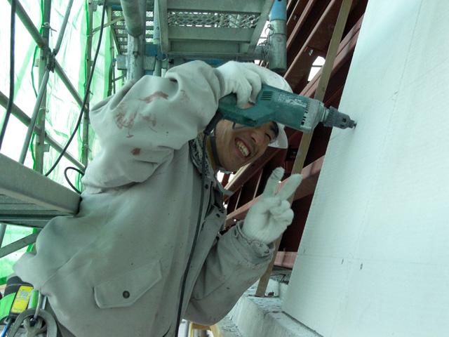 職人さんが1枚1枚、丁寧に取付ていきます。・・・・・まじめにやれ〜!(^_^;)
