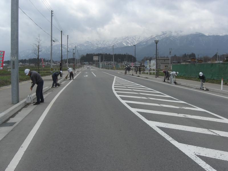 4月14日 いつもお世話になっている現場周辺道路のクリーン活動を行いました。冬期間は特に大型車の出入りが多く、道路を汚してしまいました。その他にもジュースの空き缶や弁当の容器のようなものもありました。みんなの道路ですから、ルールを守って使用したいですね。我々も気をつけます。
