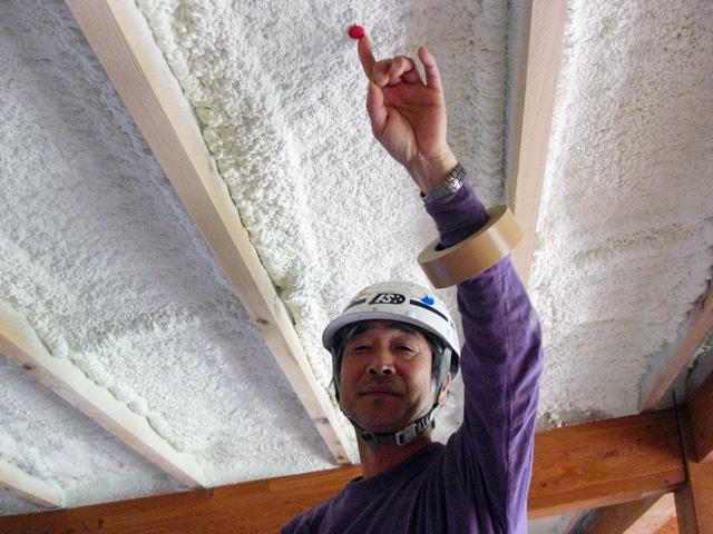 屋根や外壁の断熱工事を担当するのは、酒田出身の森口眞吉(もりぐちまさよし)さん。
