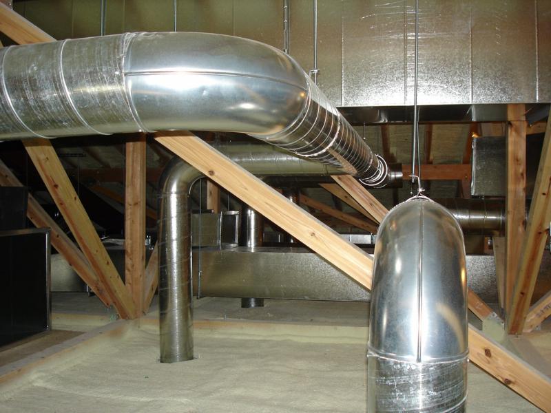 これも以前のものと同じく冷暖房用のダクトです。この丸い筒の中を空気が移動し、夏は冷たい空気を、冬には暖かい空気を各部屋に運びます。