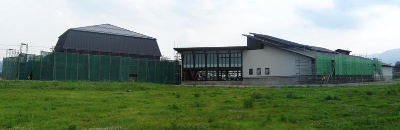 文化伝承発信ゾーンの足場が外され、その姿が少しずつ現れてきました。