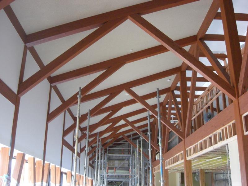 こちらは文化伝承ゾーンの交流回廊です。きれいに仕上がった天井や壁が見えてきました。