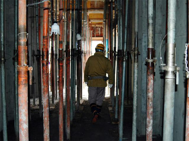 鉄筋、鉄骨の入り組む薄暗い小道の中を、今日も現場監督が行きます。