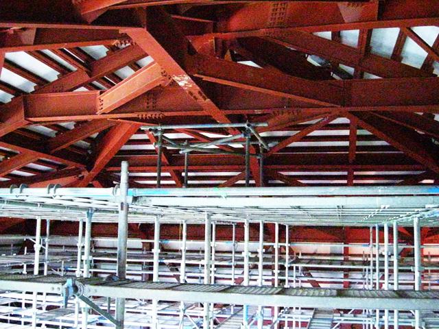屋根の下地が張られたホールの中は今、こんな状態です。