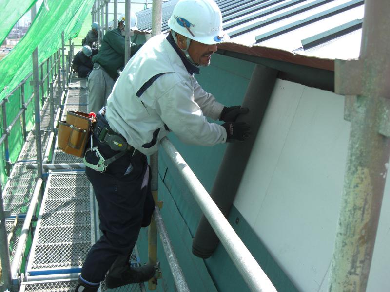 多目的交流ジーンの屋根工事の状況です。