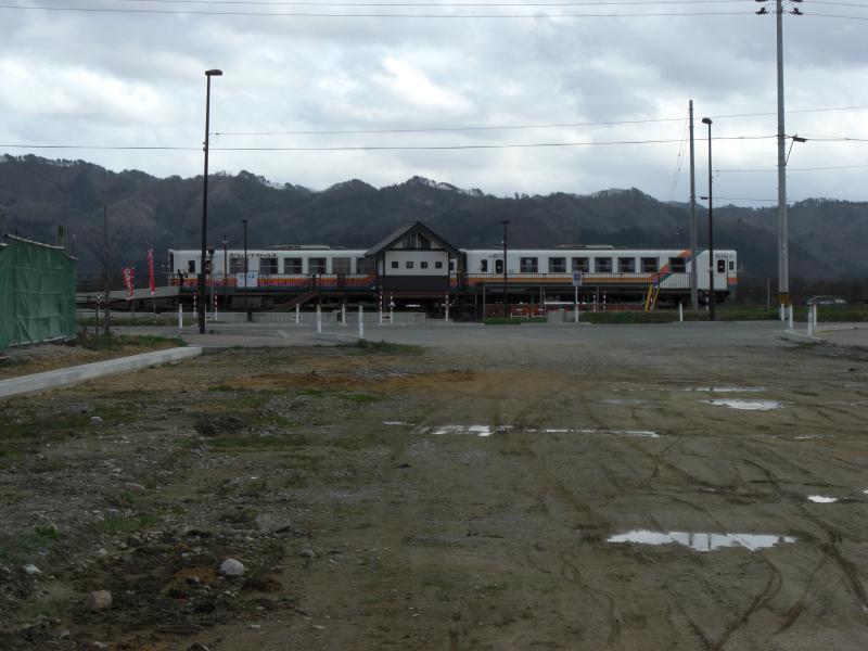 現場のすぐ側にある【四季の郷駅】にフラワー長井線が到着