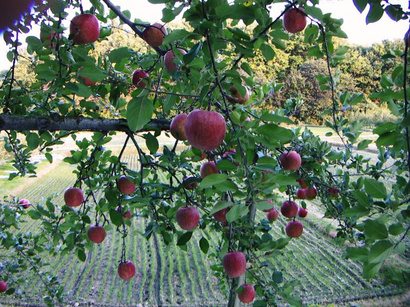 農園は地区を見下ろす小高い場所で、りんごを中心とした果樹農園です。