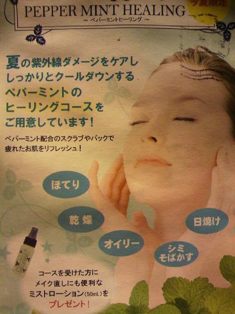 2011年夏の当店ペパーミントフェイシャルエステは、ご来店の際に 御予約
