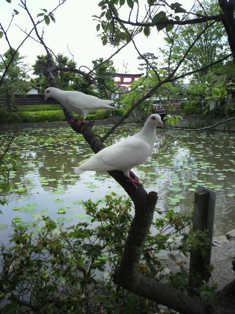 真っ白い 鳩が 飛び回ったり、木々にとまってたりしていました。