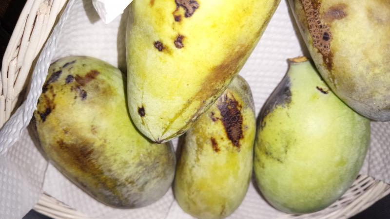 調べたら、ポーポの木というらしく、アケビと似ているけど時間が経過しても、割れたりはしないそうです。