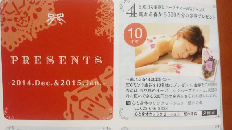 今月の読者プレゼントに眠れる森14周年記念企画として。…