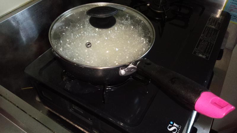 初めは、強火で 水が無くなり始めてきたら弱火 そして最後に一瞬やや強火にし、かなりの弱火にします。