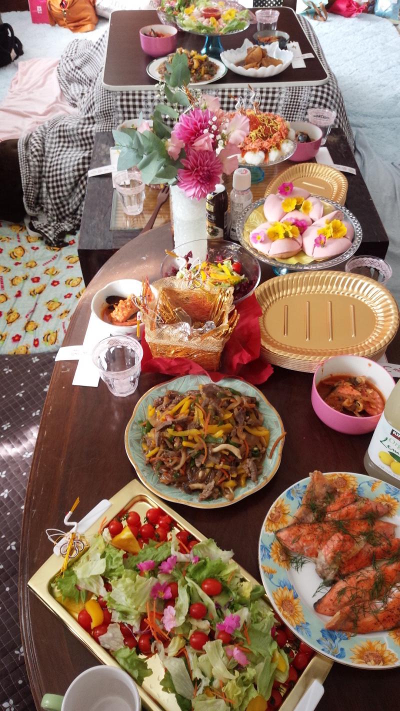 みんなで、おいしいものを準備して、テーブルの上に並んだ沢山のご馳走に