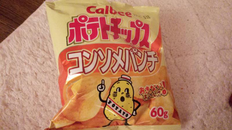 カルビーコンソメ味最安値で普通サイズは58円にて