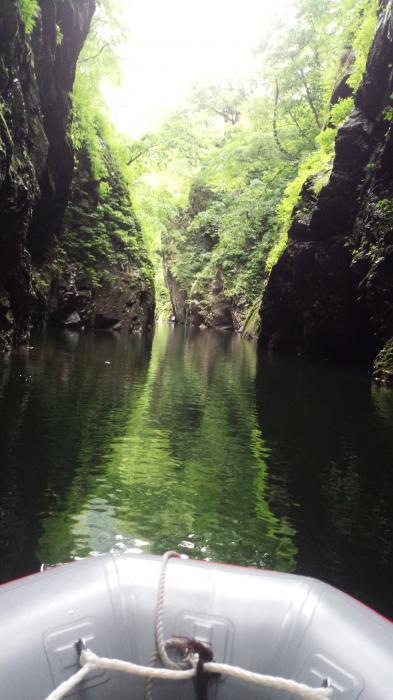 絶景な、三淵渓谷を通り抜けボートに乗りながら