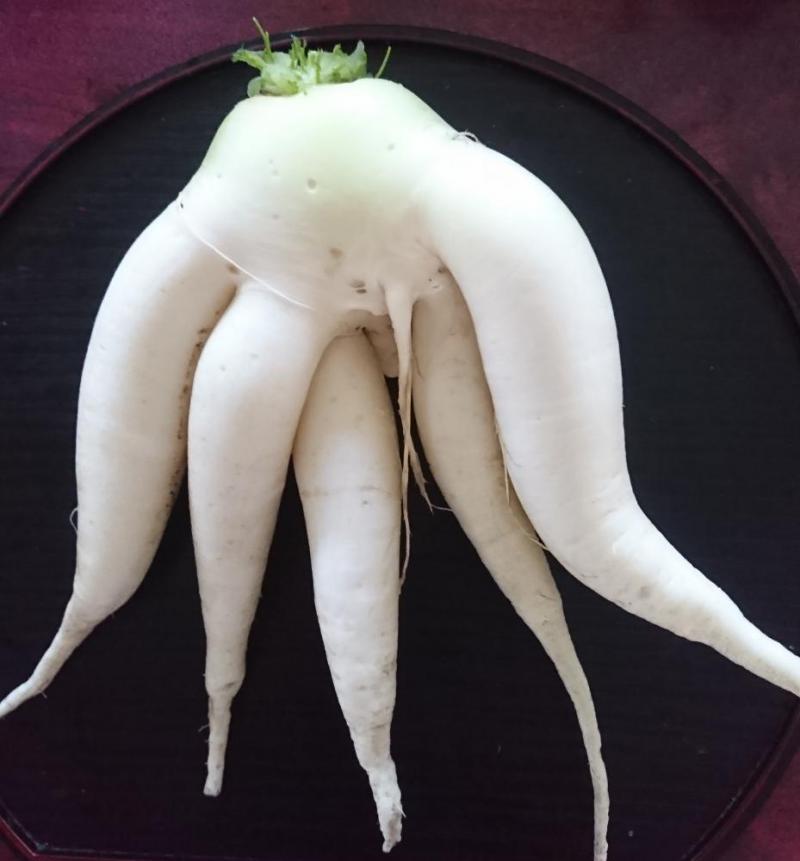 友人の畑で取れた、艶めかし過ぎる大根の写真です