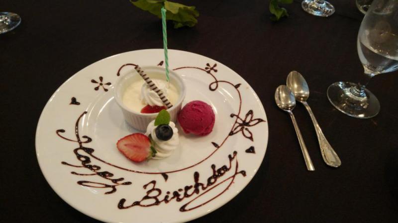 デザートプレートにはチョコレートでデコられた