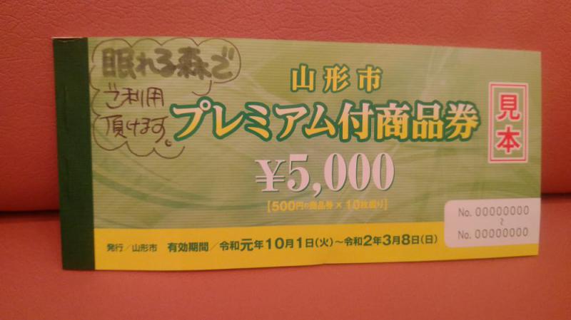 眠れる森では、山形市プレミアム付き商品券は、