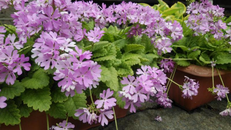 ピンク色の花々は、多年草植物の【サクラソウ】