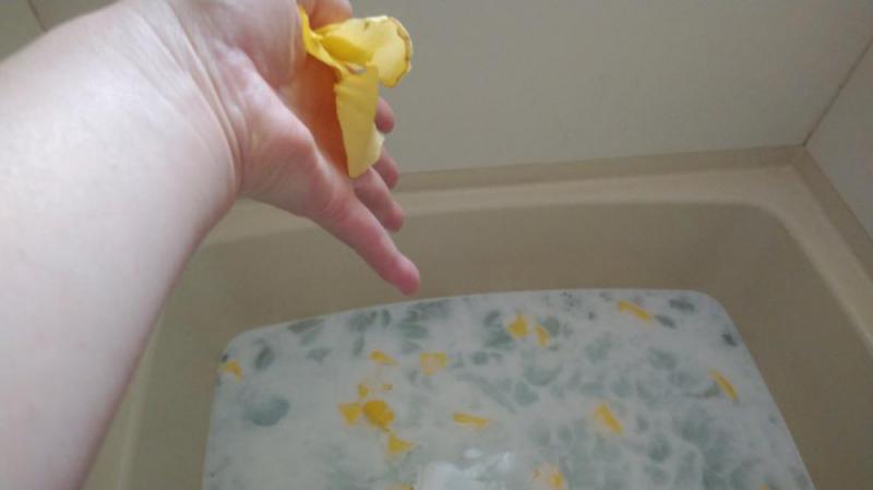 香りのよいエッセンシャルオイルのアロマバス入浴剤を入れて