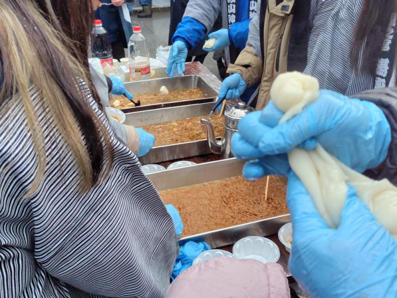 臼でついたお餅を振る舞っていただき