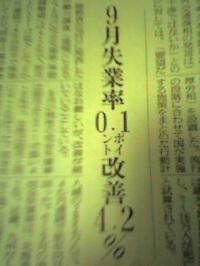 【9月失業率0.1ポイント改善4.2%】 ■総務省が28日に発表した労働力調査(速報)によると、9月の完全失業率(季節調整値 )は4.2%で、前月より0.1ポイント低下した。6か月連続で4%台前半で推移しており、同 省は「雇用情勢はなお厳しいが、改善が続いている」としている。 ━━━━━━━━━━━━━━━━━━━━━ +++『社会保障ニュース』編集室+++本部 http://plaza.rakuten.co.jp/socialsecurity/ ※リンク生成されない場合はアドレスバーに コピペしてください。 ━━━━━━━━━━━━━━━━━━━━━  |
