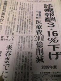 ●2005年12月19日付の読売新聞朝刊からの抜粋です。 ▲診療報酬3.16%下げ/過去最大下げ幅 医療費2400億削減 ◆政府・与党は18日、来年度予算編成の焦点である診療報酬の改定について、3.16%引き下げることを決めた。引き下げ幅は過去最大。内訳は、医師への技術料などの本体部分がマイナス1.36%、医薬品などの薬価部分がマイナス1.8%。これにより、政府は約2400億円の医療費国庫負担の削減効果を見込んでいる。高齢化で増大する社 会保障費の圧縮を目指す姿勢を明確にした。個別の医療行為の報酬は年明け以降、中央社会保険医療協議会(厚労相の諮問機関)で審議する。改定は来年4月から実施される。 ━━━━━━━━━━━━━━━━━━━━━ メインのブログはコチラ↓ +++『社会保障ニュース』編集室+++本部 http://plaza.rakuten.co.jp/socialsecurity/ ━━━━━━━━━━━━━━━━━━━━━ マガジン登録↓ 『社会保障ニュース』 http://www.mag2.com/m/0000116789.htm ━━━━━━━━━━━━━━━━━━━━━ |