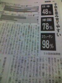 【子供を産み育てやすい/日本48%:米国78%:スウェーデン98%】