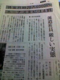 【派遣社員厳しい実態・厚労省調査/賃金月額20万6000円/ボーナス支給は4割】