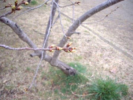 近くの公園の桜のつぼみが膨らんで緑色にちょっとなってきました