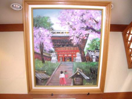 その絵画が今日変えられ桜満開の塩釜神社の絵になりました。