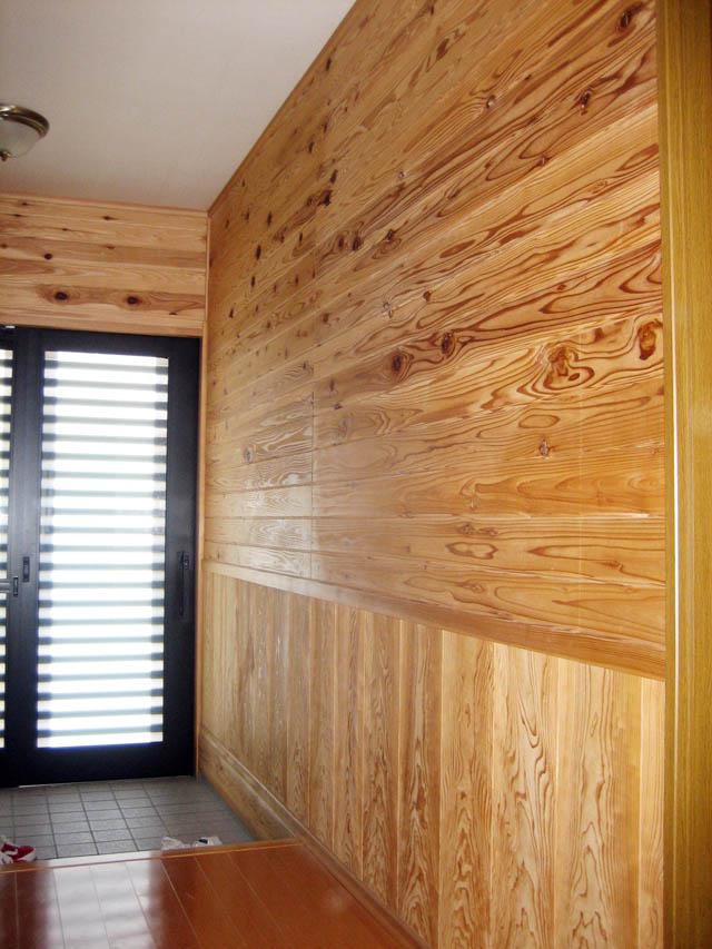 腰に杉の幅広板その上が杉の羽目板です。