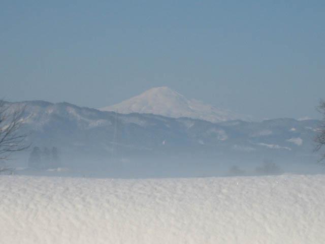 この前久々に朝からいい天気でしたので、うちの近くから見える鳥海山を写真に収めて来ました。