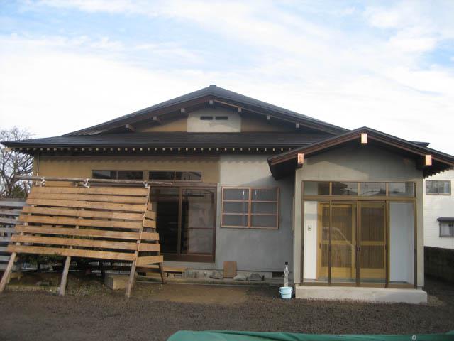手前のほうに本宅がありましたが、解体して離れだけ残し新しく玄関をつけて家半分の間取りを変えた大規模な改装工事でした。