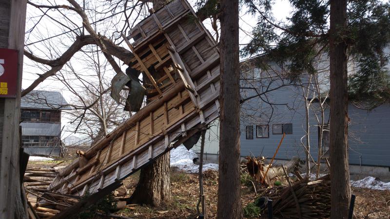 今日は、3日から4日にかけて吹いた風で物置小屋の屋根が飛ばされた、小屋の解体です、風の被害がかなり多くて、板金屋さんは大変だそうです、