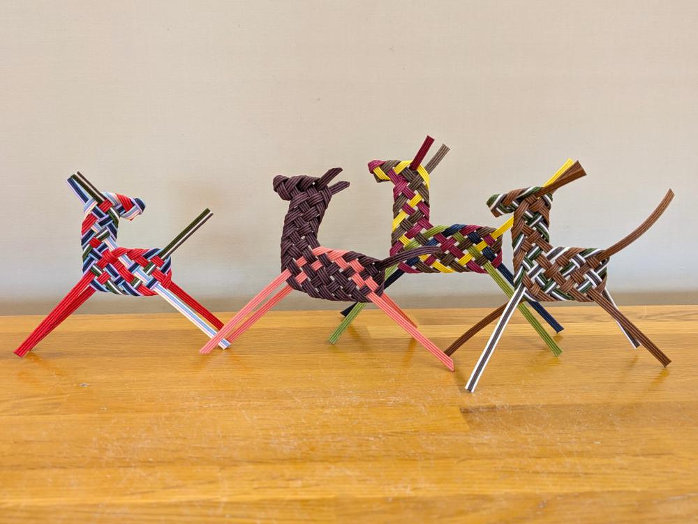 秋田の工芸品「イタヤ馬」をカラフルな紙バンドでつくります。