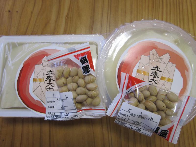 只今、「立春大吉とうふ」をお買上げの方に福豆をプレゼントしております。