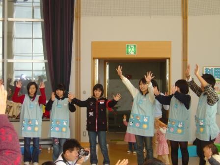 未就学児童を対象とした遊びの広場の『ひびきランド』(隔週木曜日10:00〜11:30開催/響ホール)の土曜日版が2/24に行なわれました。今回はなんでんかんでん・かざぐるま・ピッコロくらぶが参加し、アートバルーンを作ってあげたり、一緒にぬり絵や壁に絵を描いたりなど子ども達との交流を図りました。『ひびきランド』では、最後に『アブラハムの子』を参加者のみなさんと踊ります。ボランティアメンバーは少々恥ずかしかったようですが、楽しく過ごせたと後の反省会で語っていました。