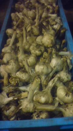 稲刈りの合間を見て、ニンニクの種選別をしています。
