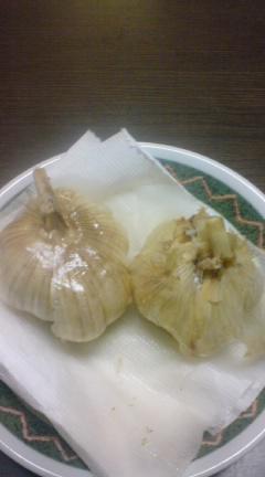 昨日の夕食で、ニンニクの丸揚げを食べました。