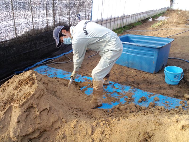 規模は違いますが、なんとなく蕎麦を打つ時の水回しのような、
